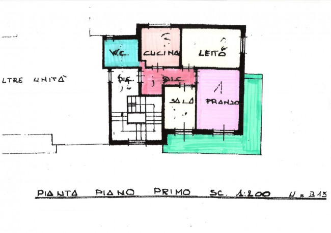 In piccolo contesto di sole 2 unità, proponiamo Appartamento al primo piano composto da: soggiorno, cucina abitabile, 2 camere da letto, bagno e balcone.